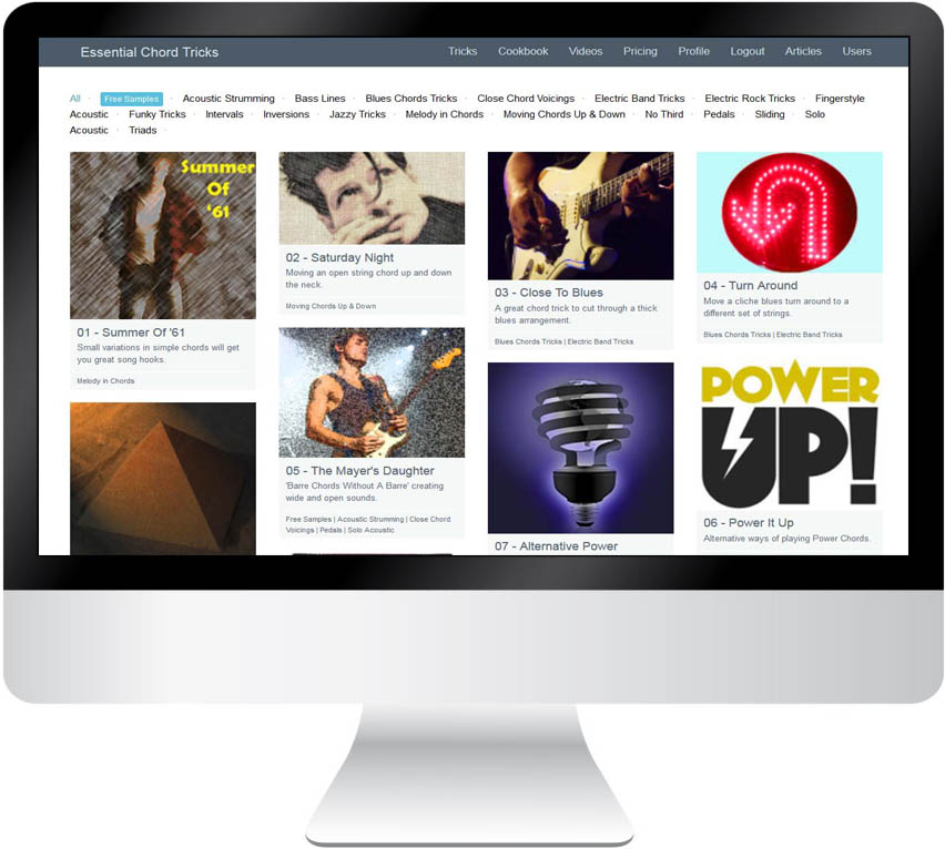 In the Download Section you can purchase All Materials from this Website and gain Life Time All Access to the ever expanding Essential Chord Tricks site.